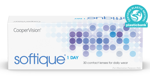 - softique® 1 day è "plastic neutral" (ha impatto neutro sulla plastica). CooperVision compensa i rifiuti di plastica per ogni confezione di lenti a contatto di softique® 1 day venduta e distribuita.